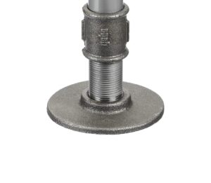 Robustes Höhenausgleichsset 60-85 mm aus Temperguss mit Flansch, Muffe und Stahlbuchse. Ideal zum Ausgleichen von Bodenunebenheiten oder Höhenunterschieden beim Möbelbau und DIY-Projekten.
