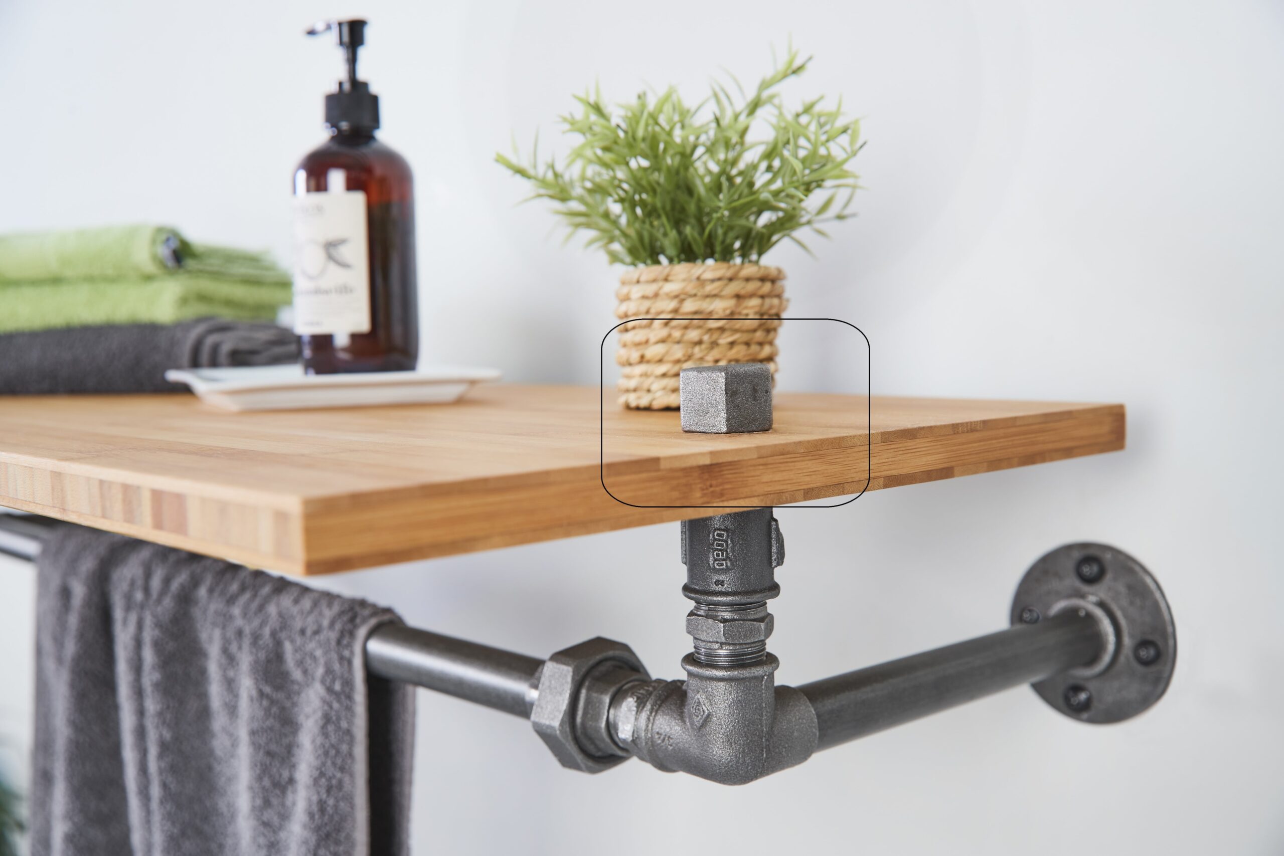 Temperguss Kappe ¾ Zoll in schwarz. Robustes Fitting für Rohrsysteme, Möbelbau und DIY-Projekte im Industrial Design.