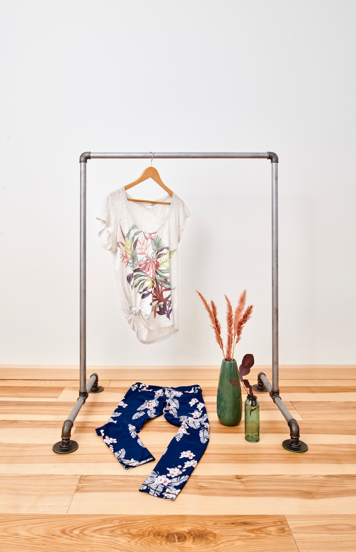 Gefertigt aus widerstandsfähigen ¾-Zoll-Temperguss-Fittingen in Anthrazit und stabilen ¾-Zoll-Wasserrohren mit 26,9 mm Durchmesser, ist er in drei Varianten erhältlich: Silber mit glatter Oberfläche, Anthrazit mit strukturierter Oberfläche oder unbehandelt für einen authentischen Werkstatt-Charakter. Der integrierte Korrosionsschutz stellt sicher, dass der Kleiderständer auch bei regelmäßigem Einsatz seine Form und Stabilität behält.
