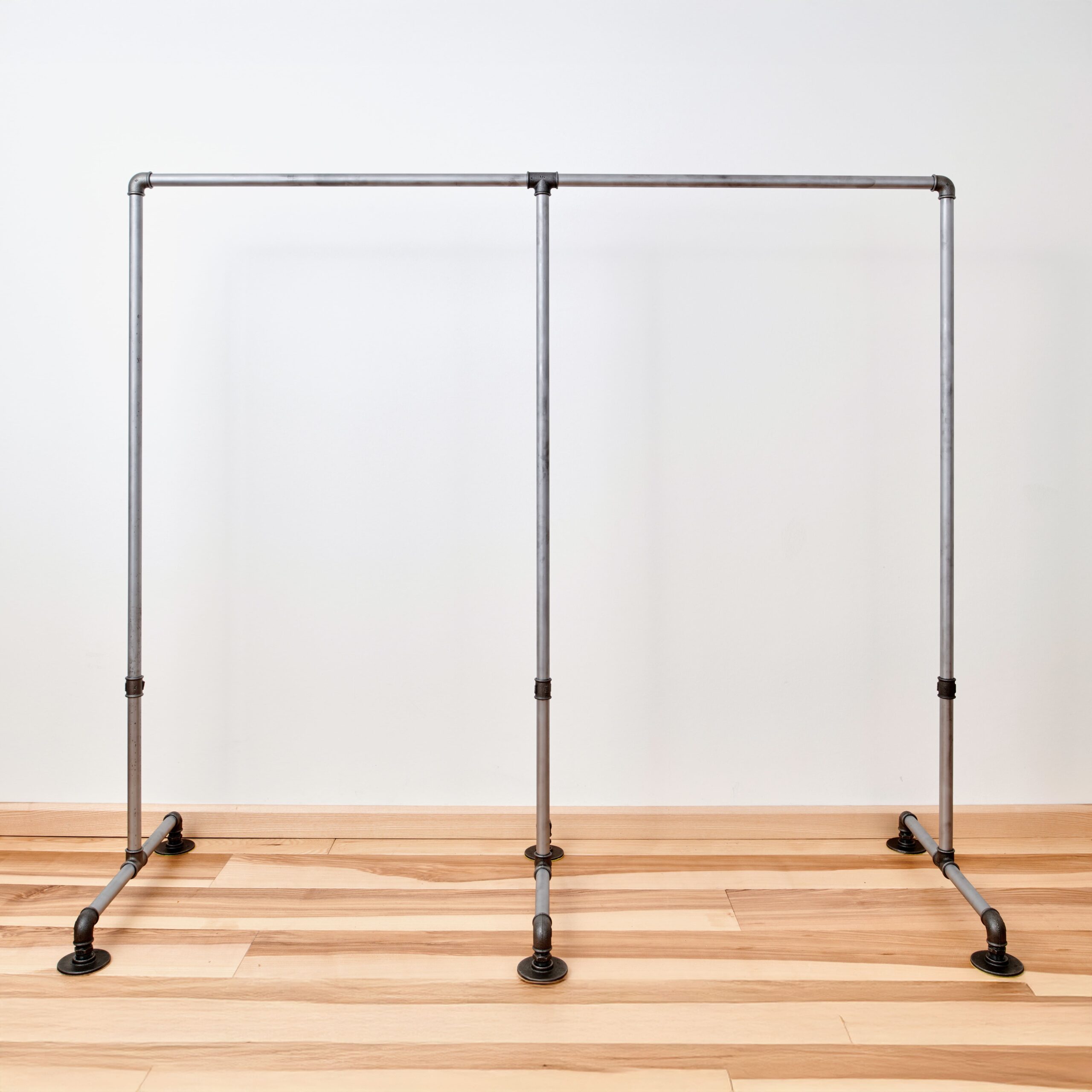 Die Konstruktion besteht aus robusten ¾-Zoll-Temperguss-Fittingen in Anthrazit und stabilen ¾-Zoll-Wasserrohren mit 26,9 mm Durchmesser, die wahlweise in unbehandelter Oberfläche, in Silber mit glatter Oberfläche oder in Anthrazit mit texturierter Oberfläche erhältlich sind. Der integrierte Korrosionsschutz sorgt für lange Haltbarkeit, selbst bei häufigem Auf- und Abbau.