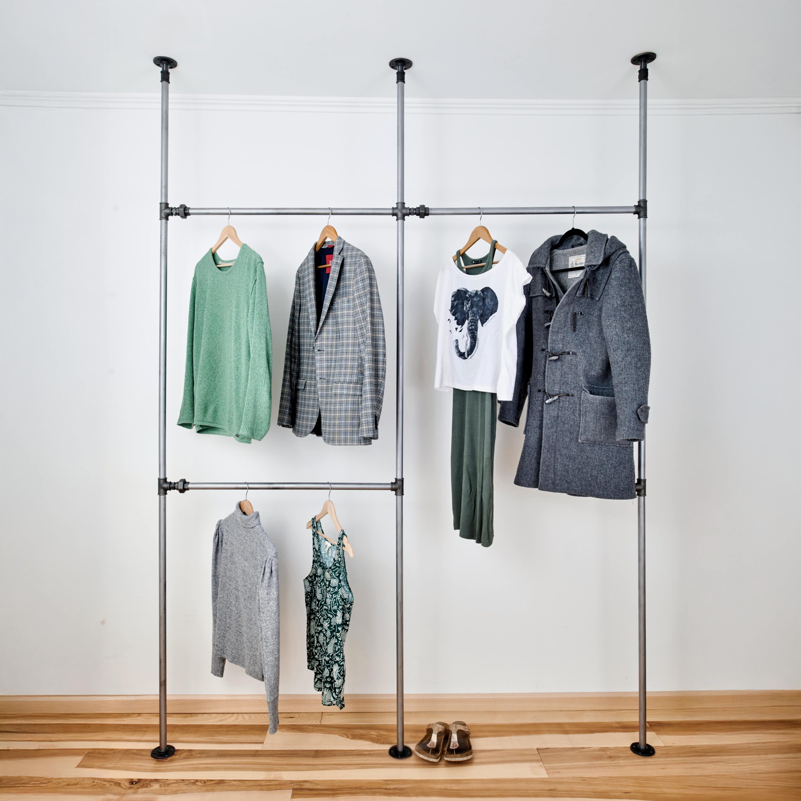Kleiderstange Gewandschuh – Schlankes Boden-Decke-System im Industrial Style