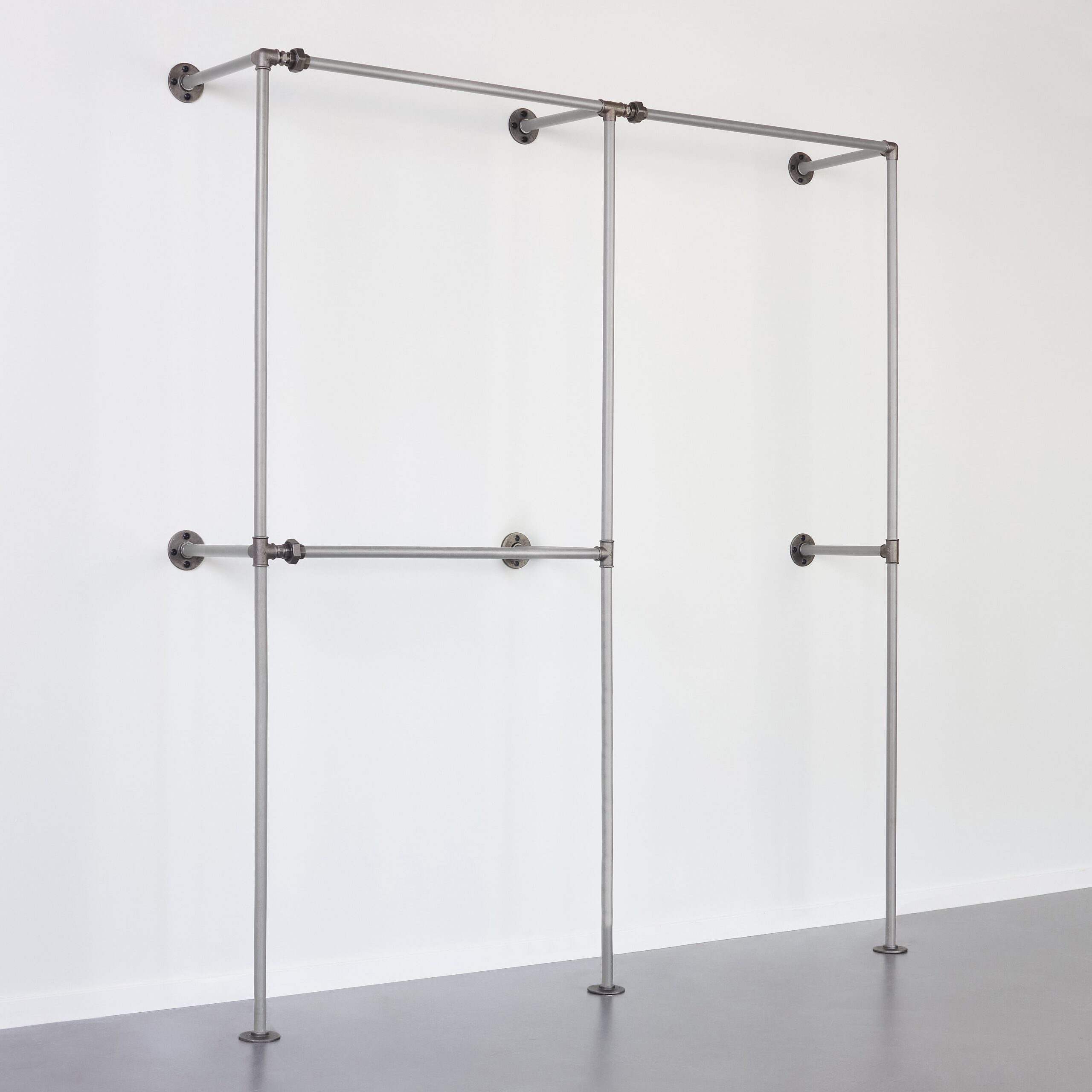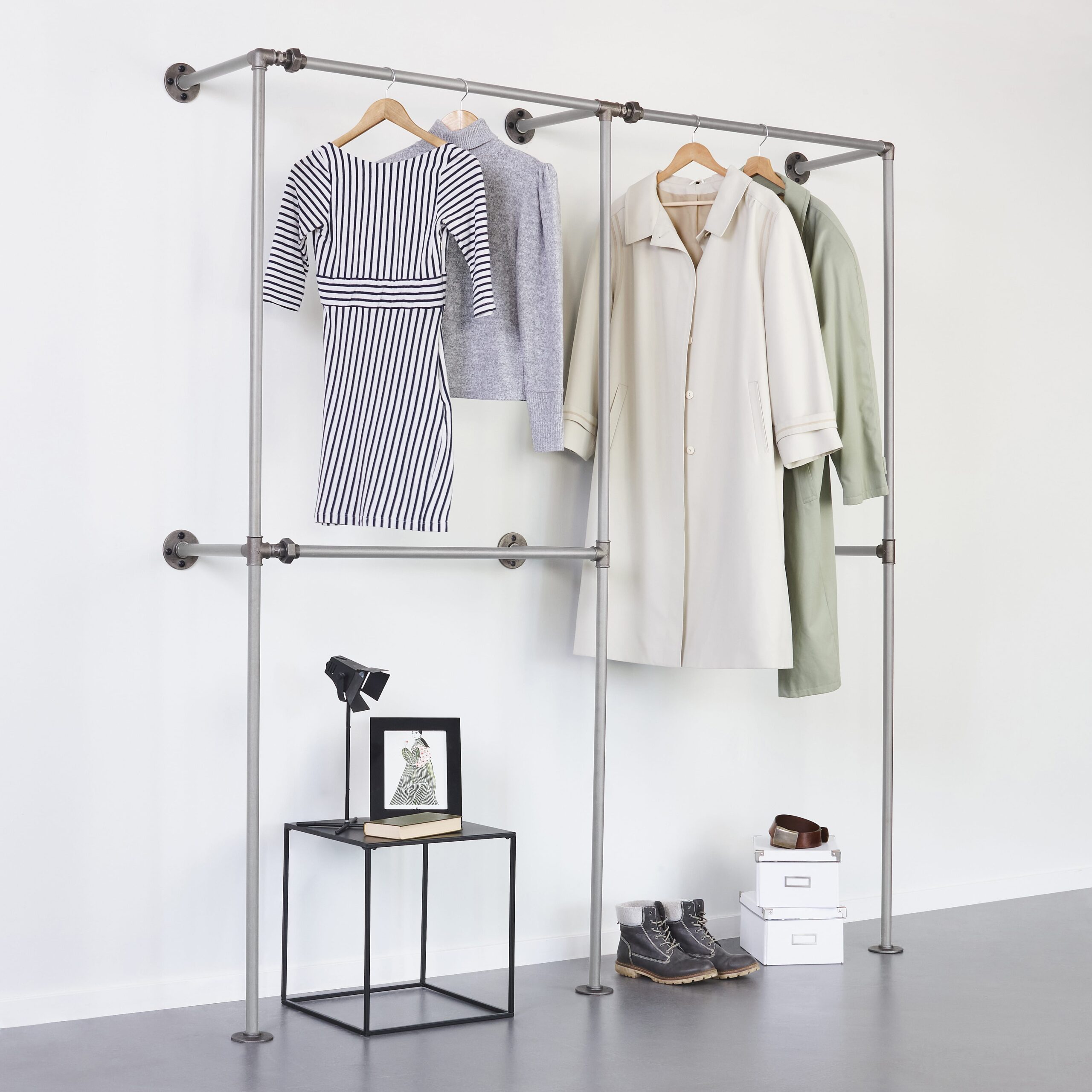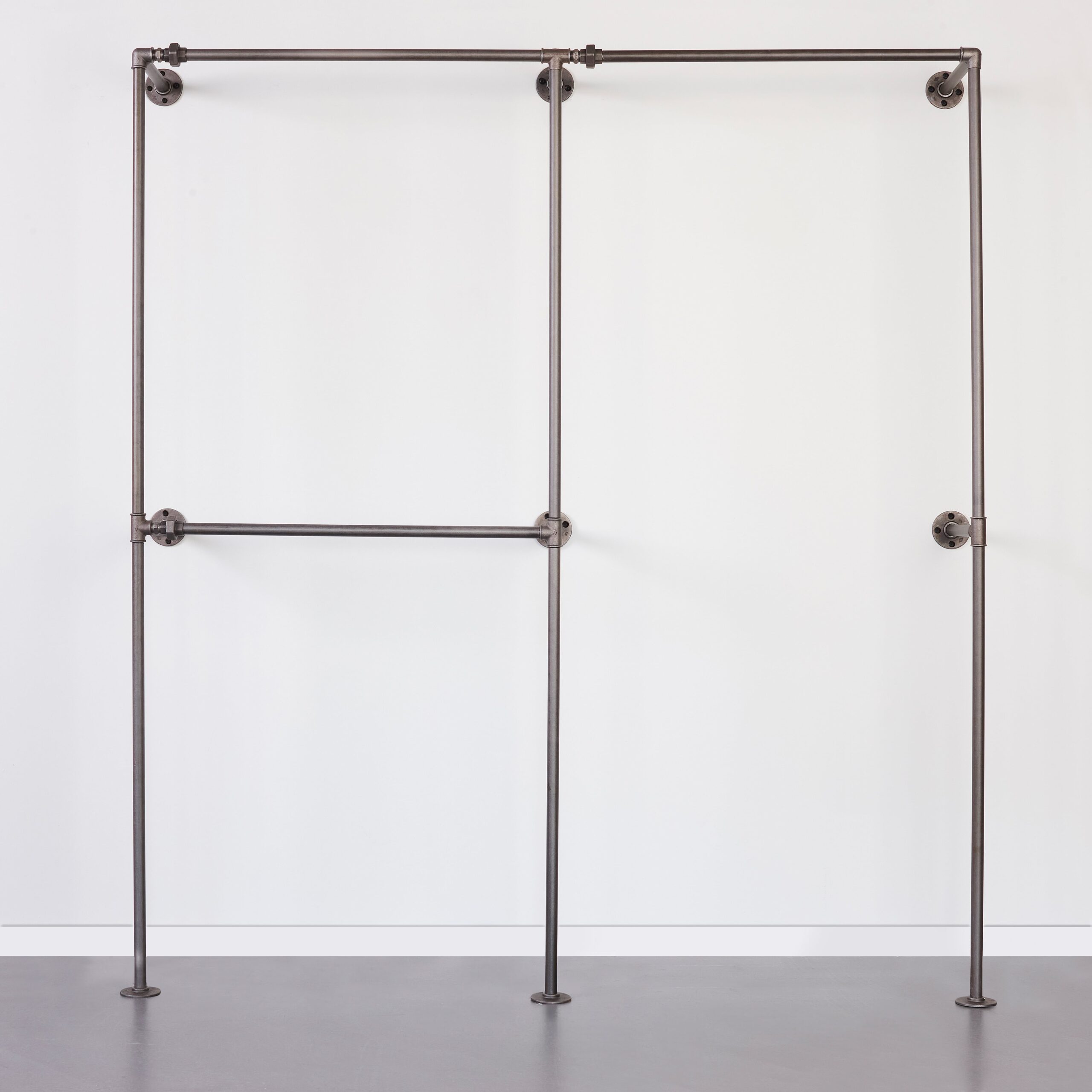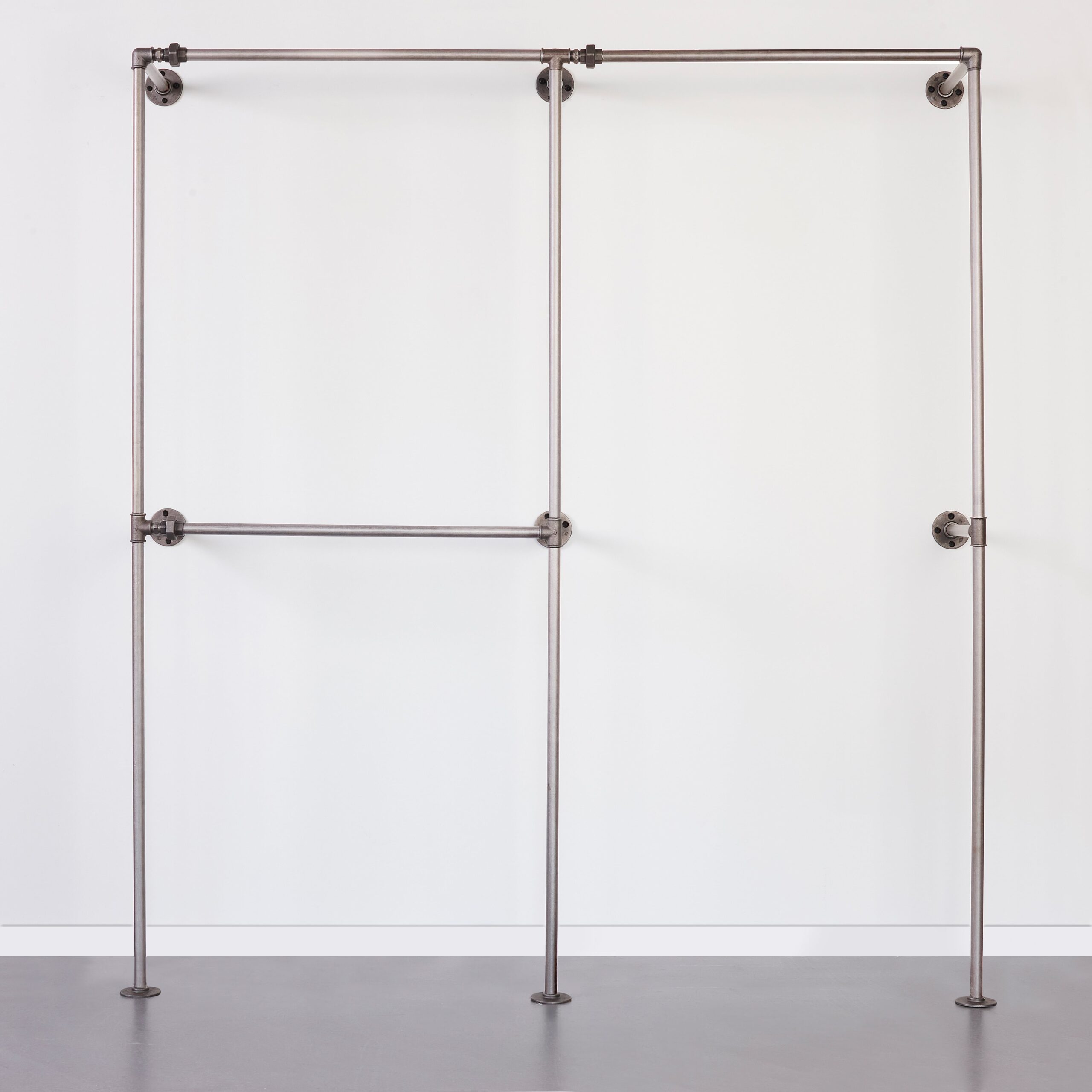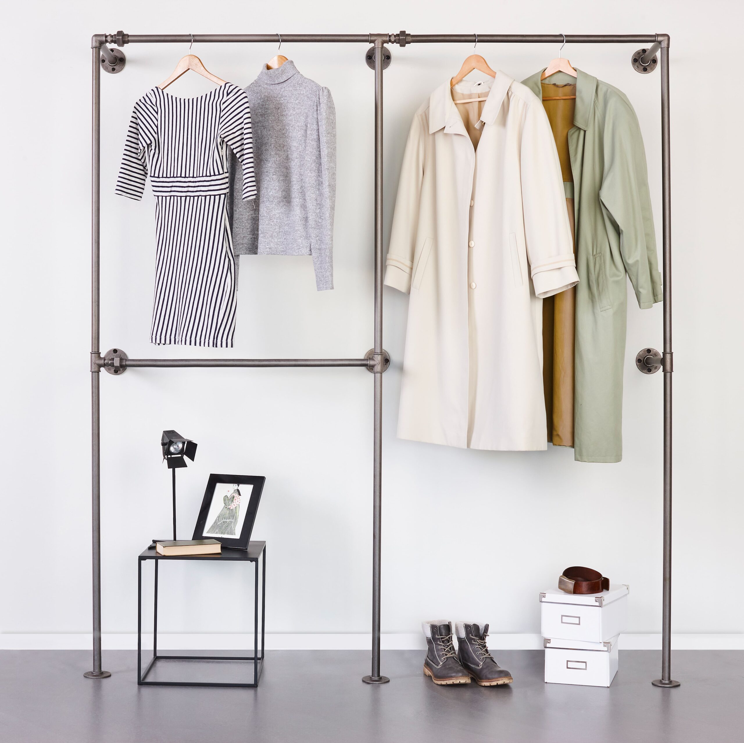 Gefertigt aus massiven ¾-Zoll-Designrohren in den Varianten Anthrazit, Silber oder mit unbehandelter Oberfläche, bringt die Kleiderstange einen modernen Industrial-Look in jeden Raum. Die hochwertigen ¾-Zoll-Fittinge aus Temperguss sorgen für eine stabile Verbindung und eine lange Lebensdauer.