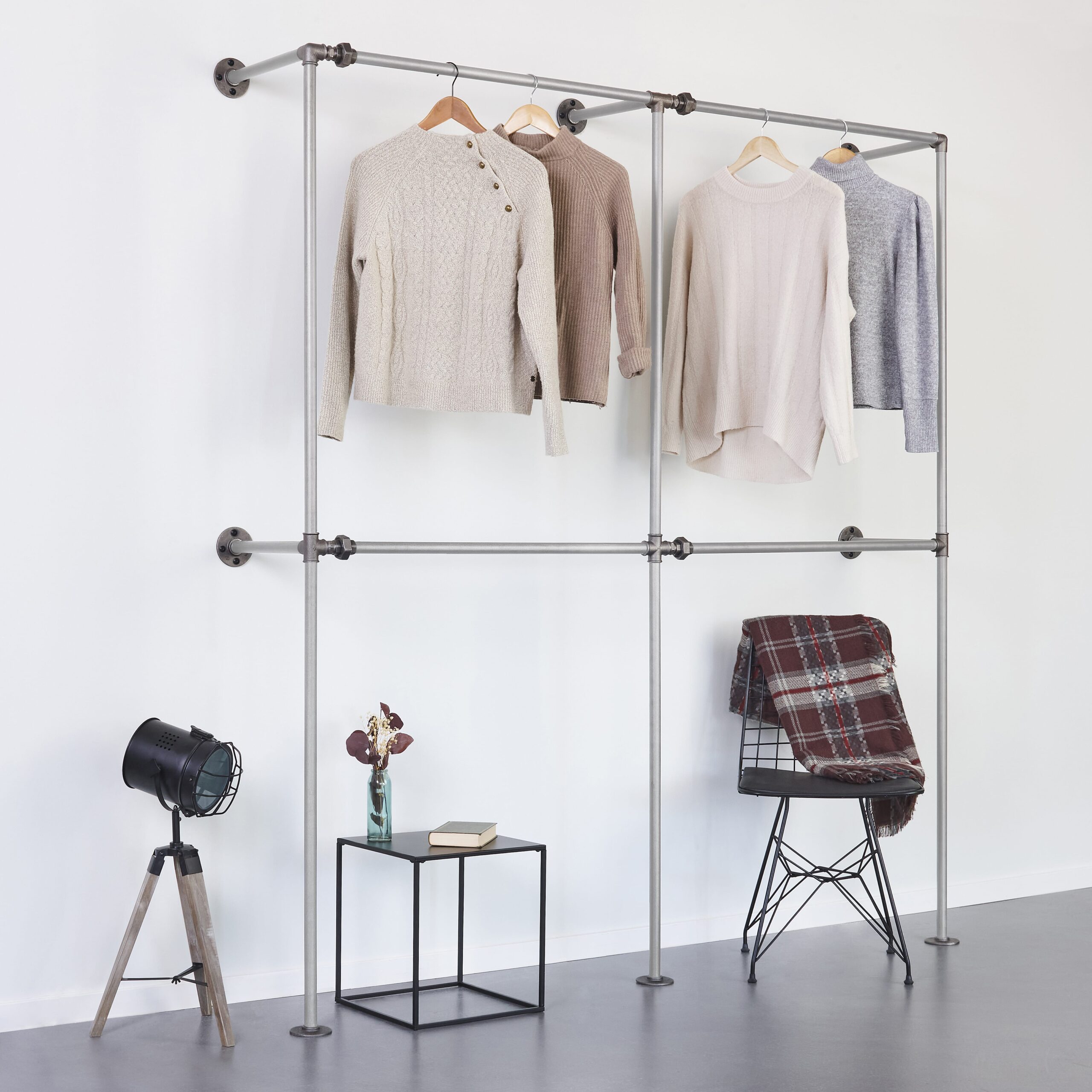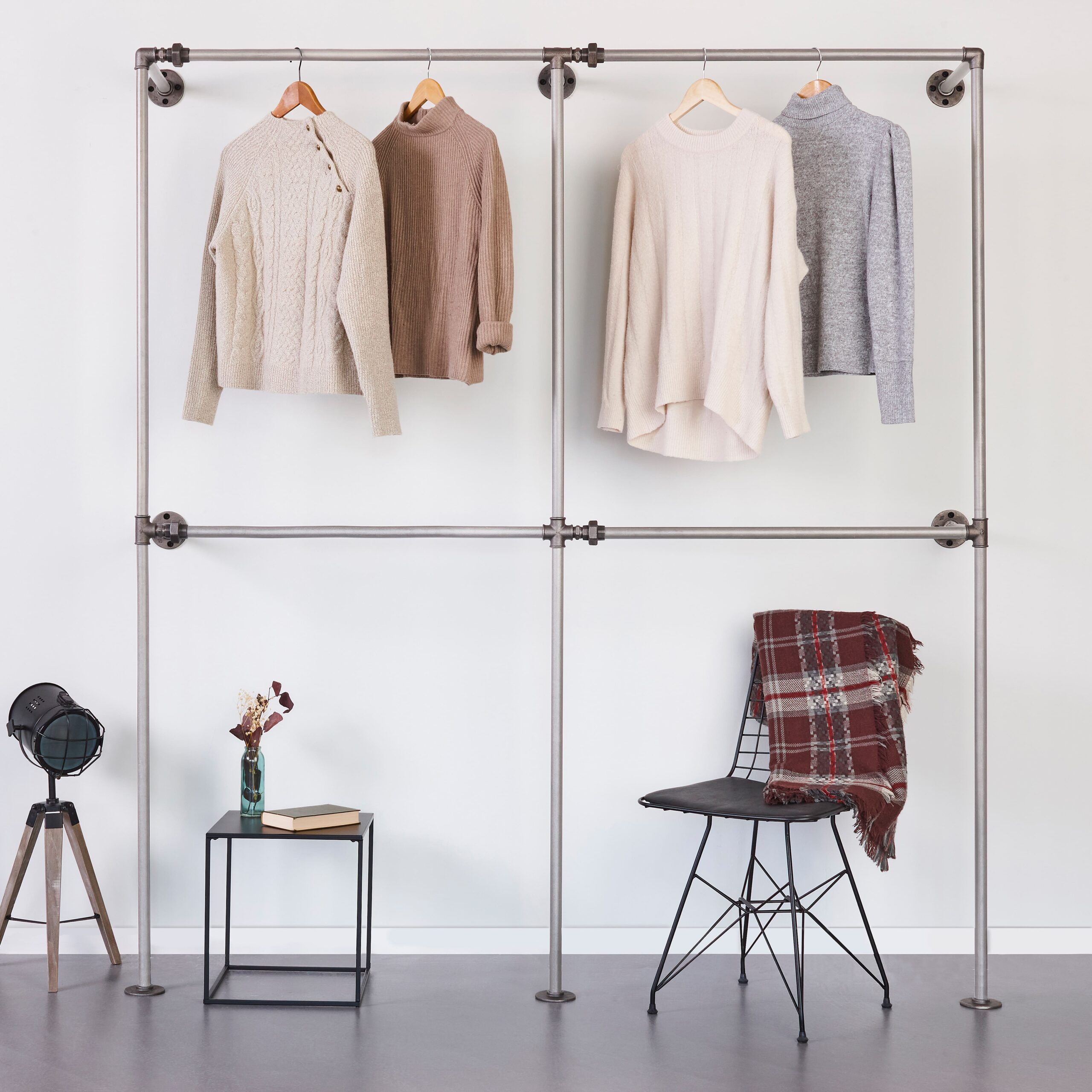 Industrieller Charme für dein Zuhause: Unsere robuste Kleiderstange Kotte bietet ausreichend Platz für deine Garderobe und verleiht deinem Raum einen modernen Loft-Flair.