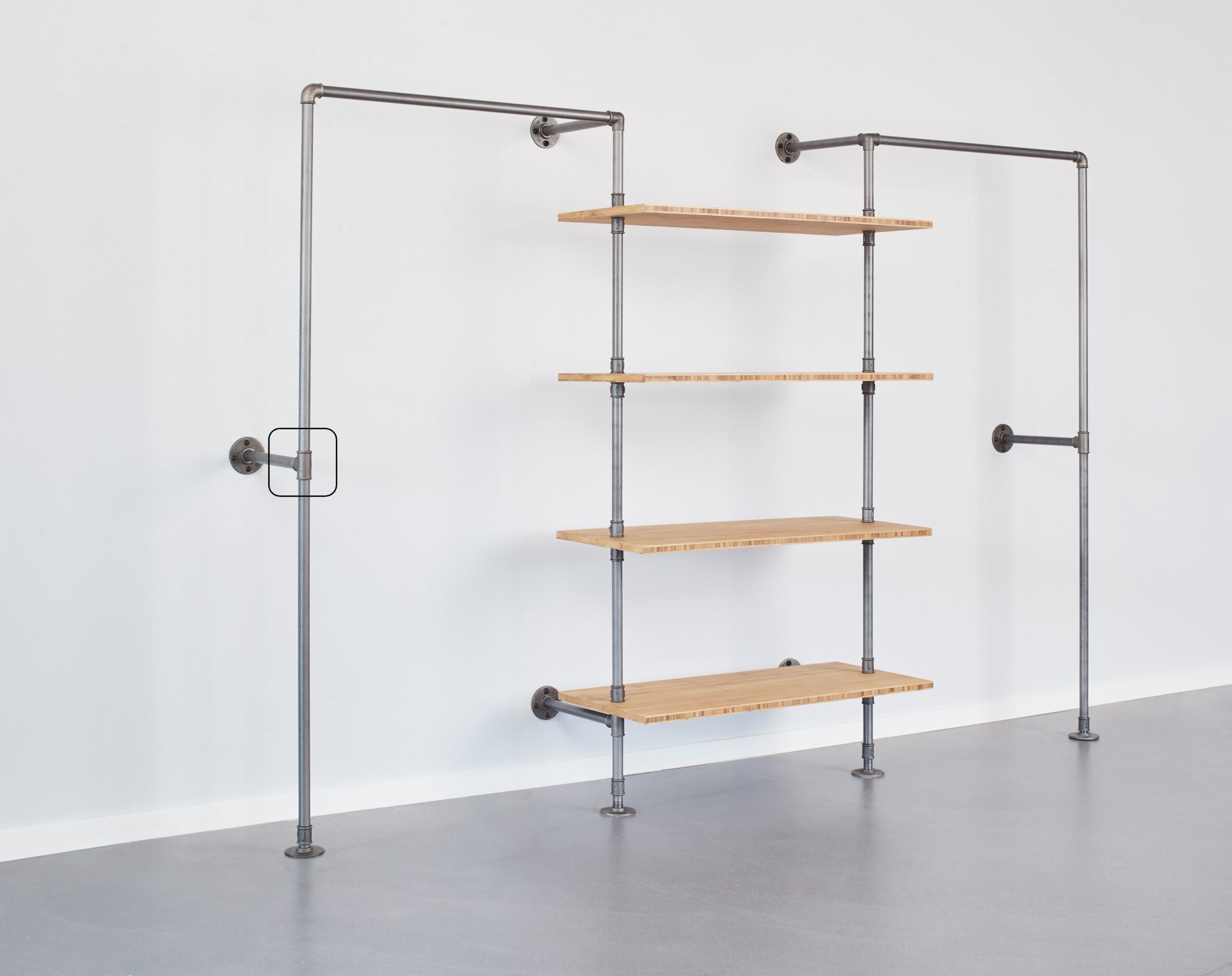 Im Möbelbau gehört das T-Stück zu den am häufigsten verwendeten Verbindern. Es ermöglicht den Bau von Querstreben, Abzweigungen und Verzweigungen in Rohrgestellen. Besonders bei Kleiderständern, Tischkonstruktionen oder Regalsystemen sorgt es für flexible Gestaltungsmöglichkeiten und hohe Stabilität im Industrial Style.