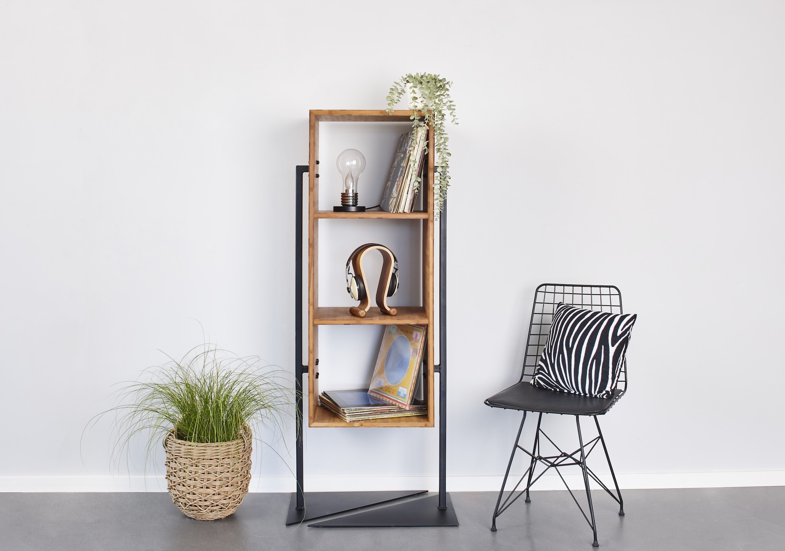 Schallplattenregal „Estampie“ – Industrial Style Regal aus Stahl und Holz [...]