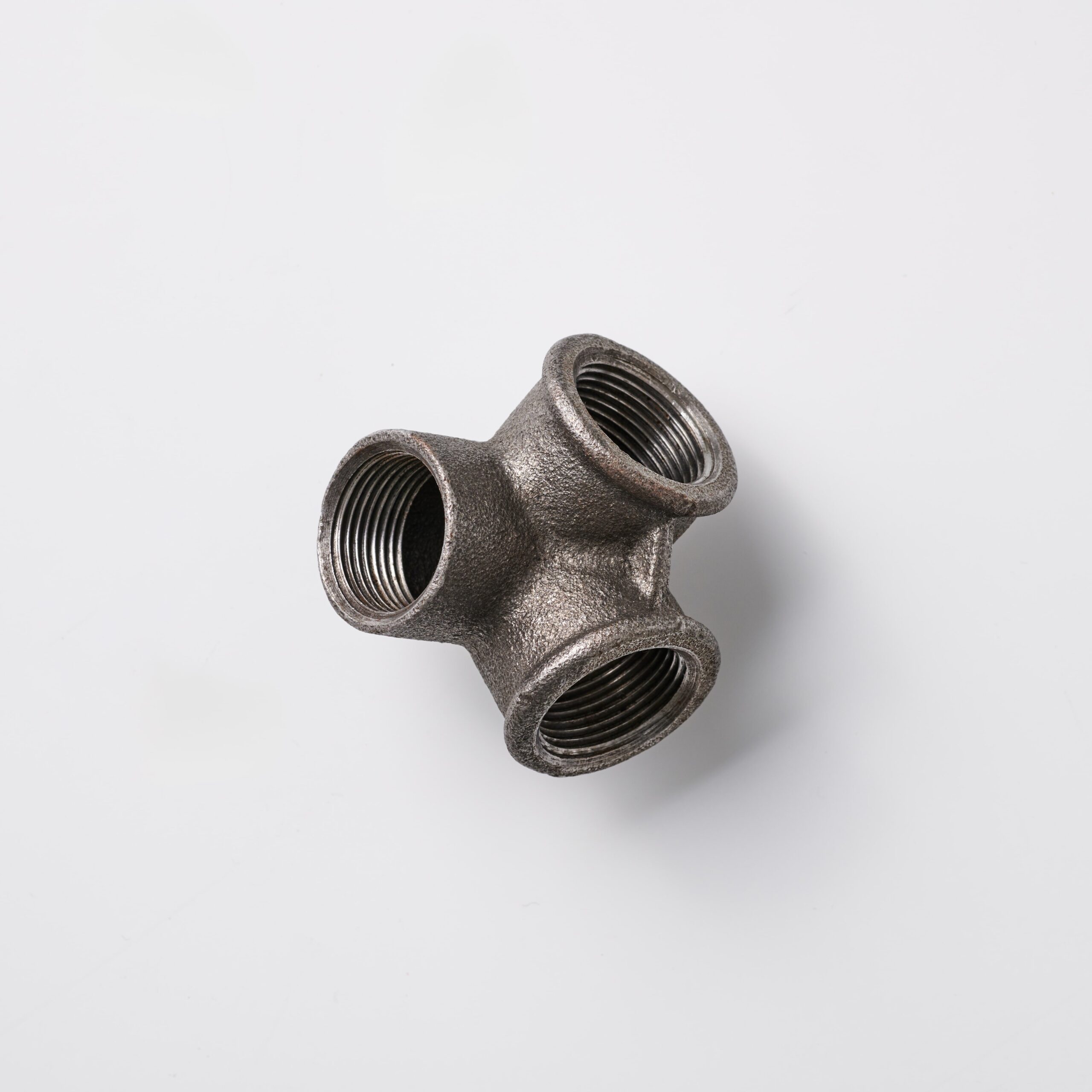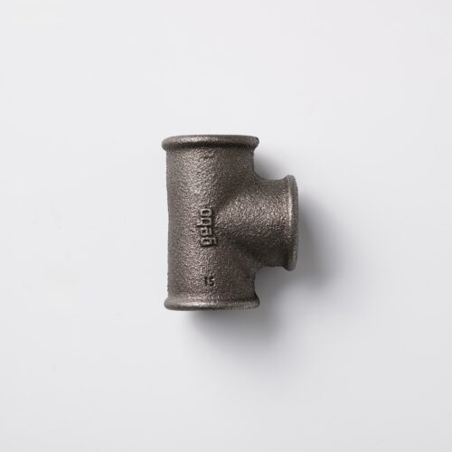 Winkelverteiler ¾ Zoll aus schwarzem Temperguss. Robustes Fitting für Eckverbindungen mit Abzweigung in Regalen, Kleiderständern und Industrial Möbeln.