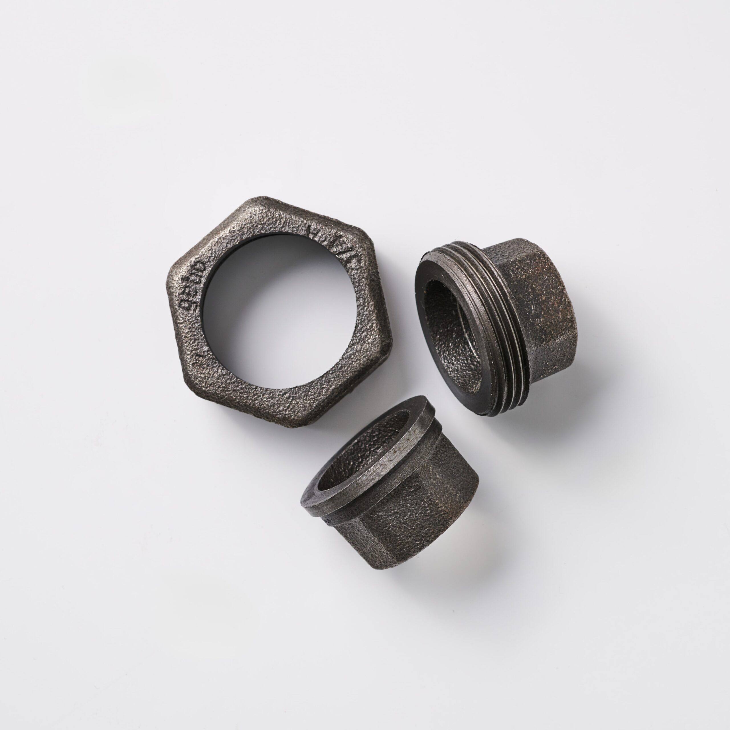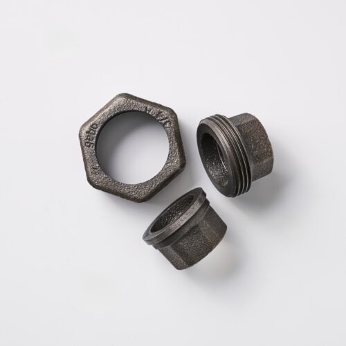 Robustes Höhenausgleichsset 55–70 mm aus Temperguss mit Flansch, Muffe und Stahlbuchse. Ideal zum Ausgleichen von Bodenunebenheiten oder Höhenunterschieden beim Möbelbau und DIY-Projekten.